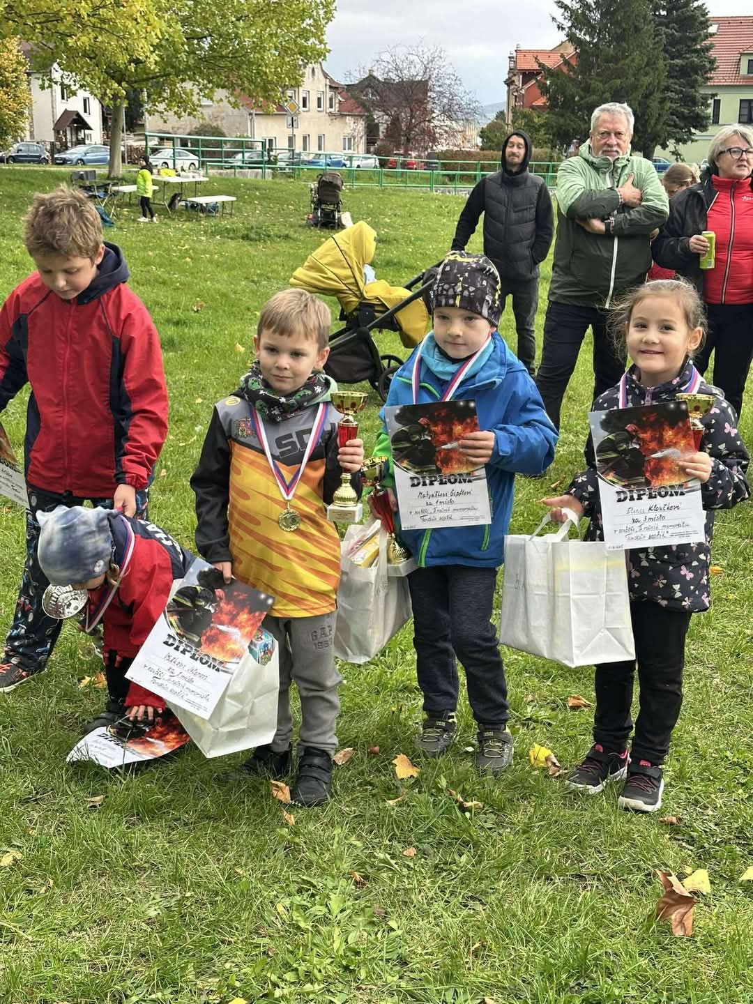 Letos jsme měli v soutěži přihlášeno šest želízek v ohni. Všem dětem se v soutěži moc dařilo, a i ti nejnovější překvapili nízkým počtem trestných bodů. Do top desítky se probojovali dvě děti. A to Jiřík Hapšták, který získal šesté místo a Vašík Jelen, který byl dokonce na bedně a vyhrál druhé místo. Vašík moc dobře ví pro koho závod běžel (ten starý pán z fotky na hasičárně♥️). Toník by byl rád, že pohár je doma.