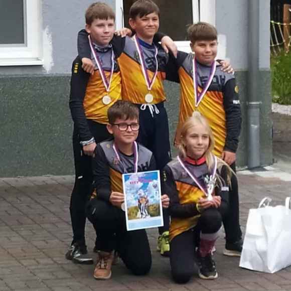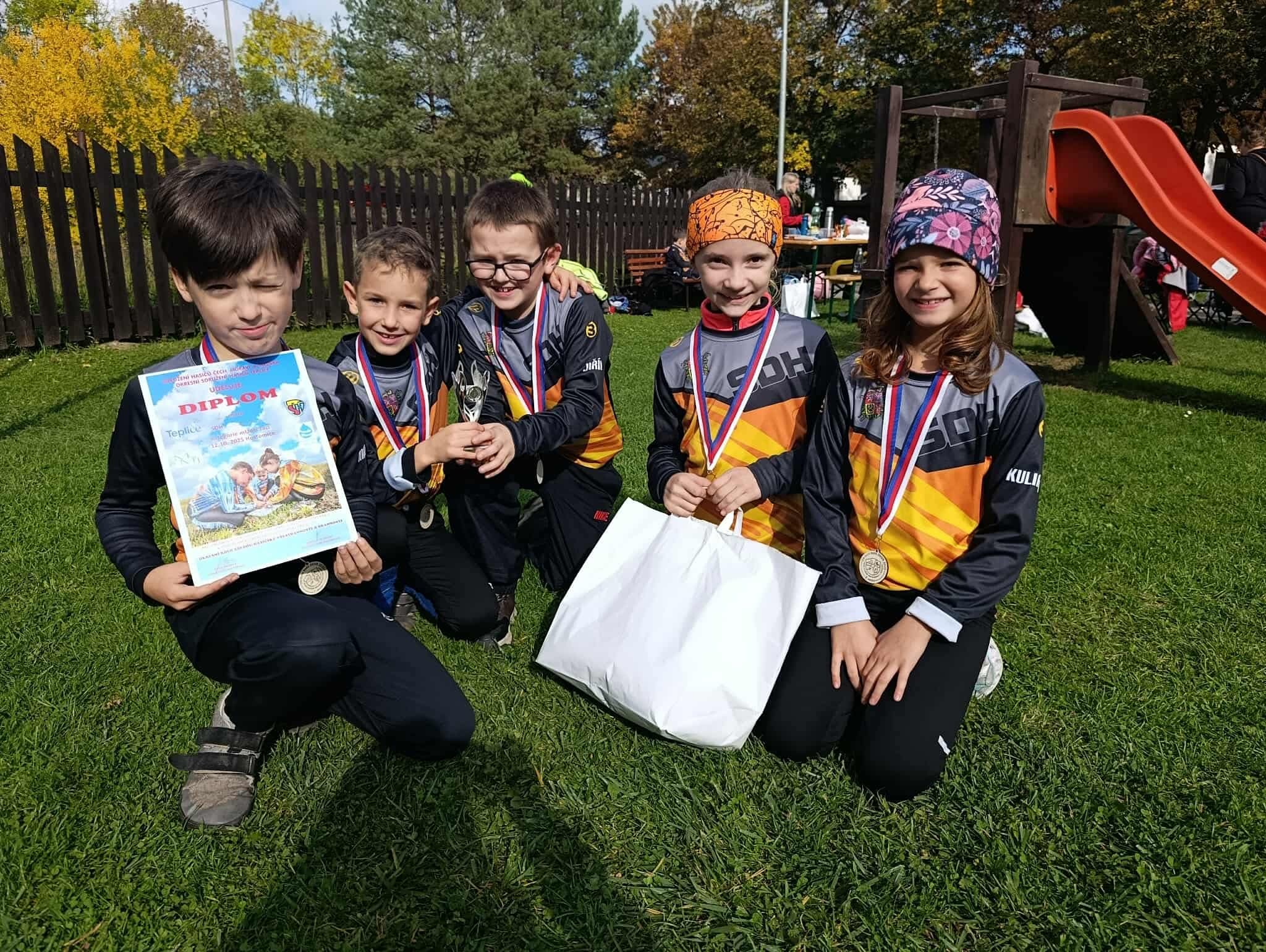 Do závodu jsme přihlásili dvě družstva mladších. Obě byly šikovné a doběhli na druhém místě, které znamená postup a na sedmém místě..🥈🏆