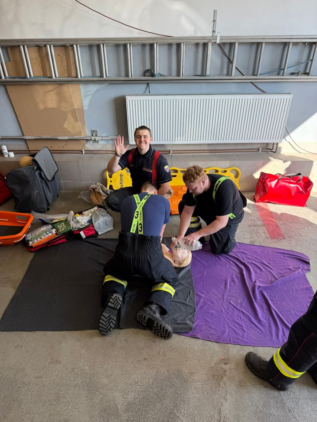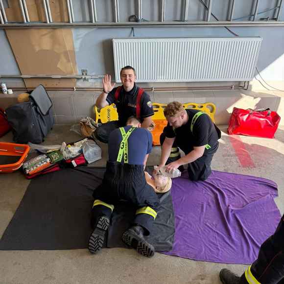 Vše jsme zakončili cvičným výjezdem k muži, který spadl ze žebříku při výměně žárovky. 🪜💡