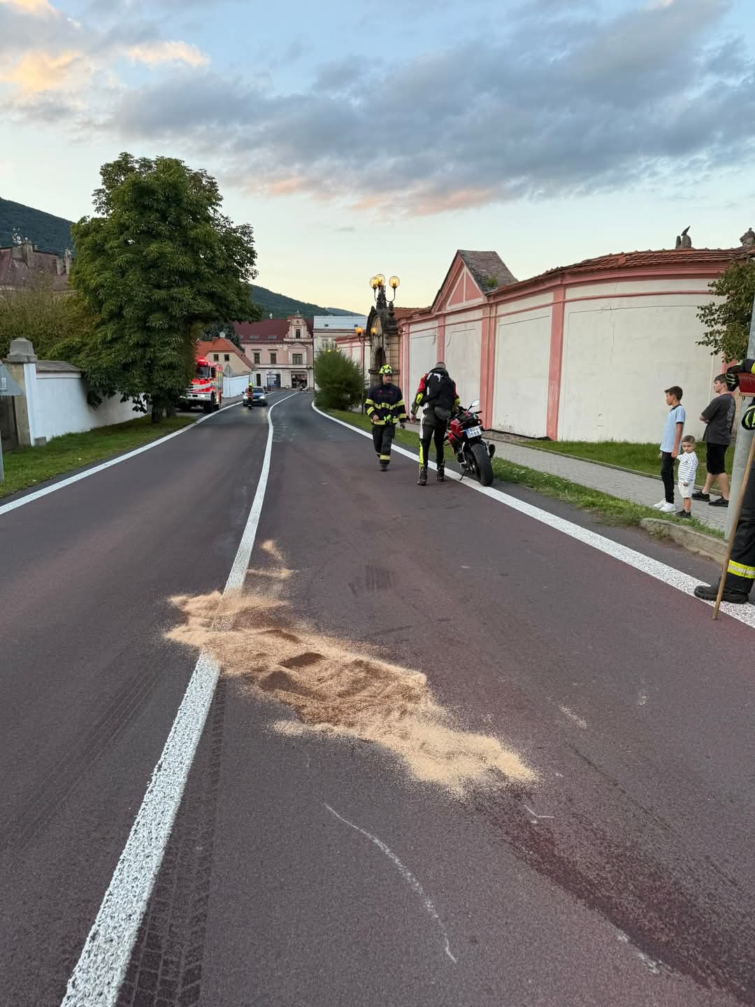 Dne 6.9. byla naše jednotka vyslána k dopravní nehodě motocyklisty, který uklouzl na novém protiskluzovém povrchu vozovky. Událost se obešla bez zranění. Na místě došlo k úniku pohonných hmot, které bylo nutné odstranit.