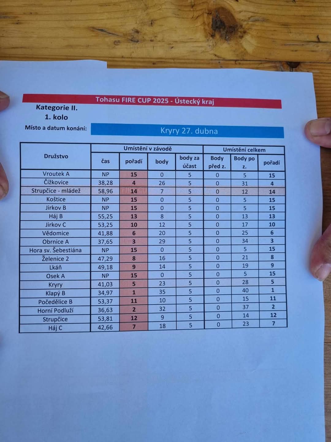 Po zimní přestávce se nám rozjely dětské soutěže v plném proudu a aby toho nebylo málo, záhajil se i Krajský závodní seriál Tohatsu cup 2025. Kdo kam a kdo s kým???? To byla otázka, kterou jsme museli vyřešit během soboty, protože se dospělácká soutěž kryla s dětskou soutěží v Duchcově... Do Tohatsu cupu nás odjela reprezentovat dvě družstva Osek A - mlaďoši a Osek B - diskotéky jak nám říká omladina, takže starší v kategorii nad 35 let. Do Duchcova odjelo družstvo přípravky a čtyři družstva mladších hasičů... Starší se nepopdařilo postavit, protože při absenci členů co jeli na Tohatsu se oni přesunuli do pozic pomocníků trenérům mládeže.