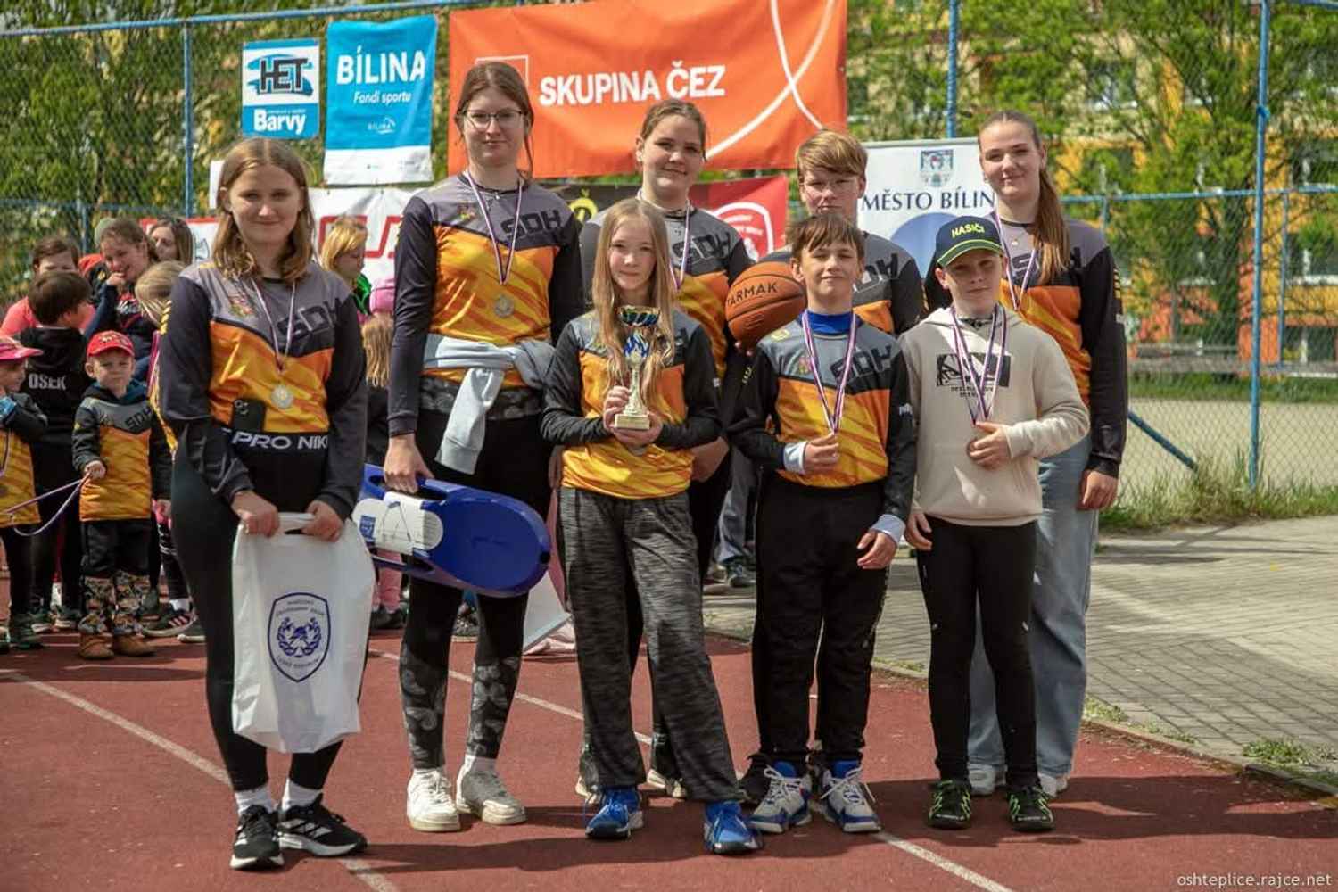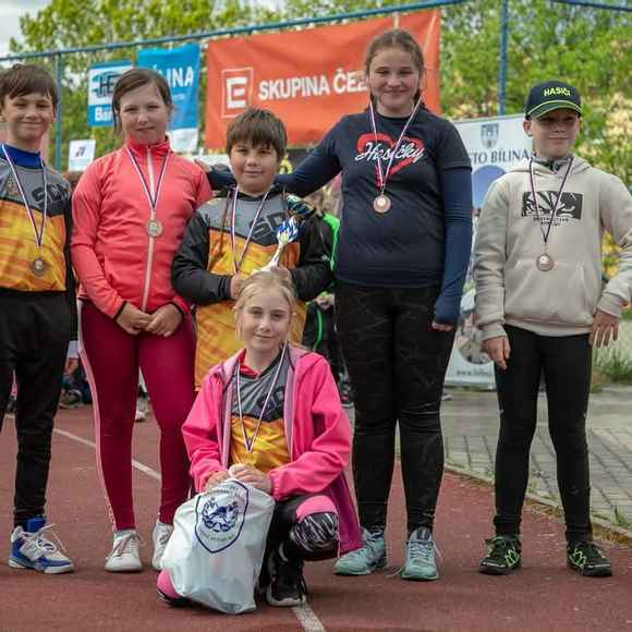 Mladší: zde už máme ambice na medailové umístění... I když nemáme bariéry ani pořádný plac, tak víme, že máme neskutečné srdcaře a bojovníky, kteří by pro ten tým i umřeli. A přesně tohle se stalo. Kapitánem v Áčku je Domča Mráčková, která je lídrem a tahounem týmu. Rozeběhla štafetu opravdu velice rychle, vlítla na kladinu a v půlce se nám všem na stadionu zastavil dech!!! Pravá noha šlápla do prázdna a následoval velice ošklivý pád... V nikom z nás by se krve nedořezalo.. Domča se zvedla vrátila před kladinu překonala, předala štafetu a až pak padla na tartan.... Poté následovalo zavolání RZS odvoz do nemocnice, RTG, sono aby se vyloučila možná zranění.... I přes tento šílený pád skončilo Áčko ve štafetě na třetím místě... Všem bylo jasný, že Domča dnes dozávodila a v útoku jim bude sakra chybět. Tato nepříjemná událost otřásla celým družstvem a není divu. Šlo se na útok, který byl pomalejší, ale i tak se celkově Ačko mohlo radovat ze třetího místa a bronzových medailí...🥉🏆 Radost byla o to větší, že už tam s nimi stála a radovala se i jejich kapitánka Domča... Štěstí v neštěstí... Odneslo to hodně odřené břicho naražená žebra, ale jinak nic víc.... Všichni jsme si oddychli......... Ani další dvě družstva nedopadla zle a i oni se rvali jako lvi.......